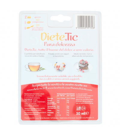 Diete.Tic - все достоинства десертов с нулевой калорийностью. Идеально подходит для подслащивания горячих и холодных напитков. Попробуйте его также с йогуртом и фруктовыми салатами. Идеально подходит для десертов: не меняется при высоких температурах. Мгновенно растворим, с прекрасным вкусом и без ароматизаторов.