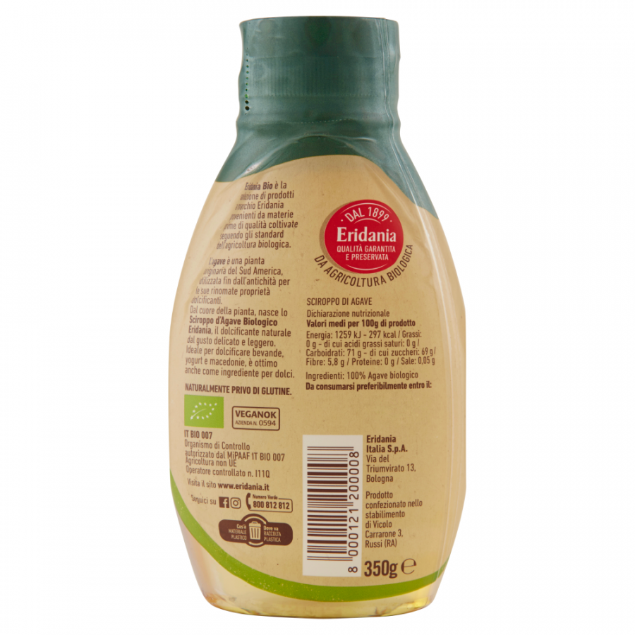 Eridania Bio - это продукция бренда Eridania из качественного сырья, выращенного в соответствии со стандартами органического земледелия. Агава - это растение, произрастающее в Южной Америке, которое издревле использовалось из-за его известных подслащивающих свойств. Из сердца растения рождается органический сироп агавы Eridania - натуральный подсластитель с нежным и легким вкусом. Идеально подходит для подслащивания напитков, йогуртов и фруктовых салатов, а также в качестве ингредиента для десертов. Без глютена.