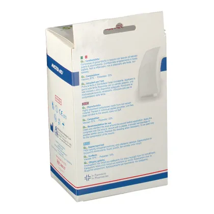Показан как барьер для сжатия и / или поглощения экссудата. Подходит для очищения, очистки и дезинфекции всех типов ран, а также для защиты кожных поражений.