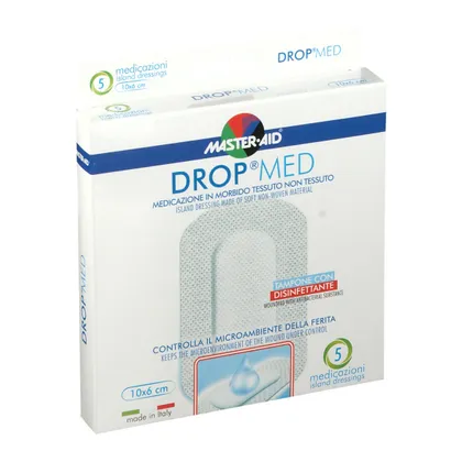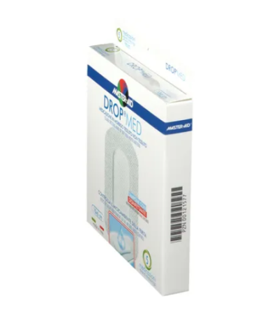 Drop Med® - это прозрачная повязка из нетканого материала, снабженная впитывающей подушечкой с дезинфицирующим веществом (хлоргексидина диглюконат 0,5%). Гипоаллергенный клей, не содержащий растворителей и натурального латекса.