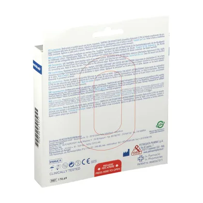 Центральная подкладка: нетканый материал. Большая поверхность, контактирующая с раной. Микроперфорированная антипригарная пленка. Высокая впитывающая способность. Тампон содержит 0,5% диглюконата хлоргексидина, мощного антисептика широкого спектра действия.