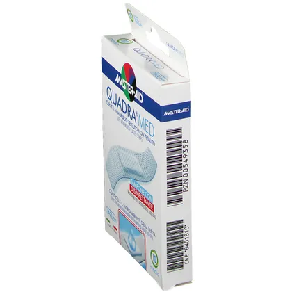 Quadra Med - пластырь из нетканого материала, снабженный впитывающей подушечкой с дезинфицирующим веществом (хлоргексидина диглюконат 0,5%). Гипоаллергенный клей, не содержащий растворителей и натурального латекса. Он имеет эксклюзивную запатентованную эргономичную форму. Используется в основном для лечения ран с повреждением дермы, которые могут зажить вторичным натяжением. Его функция - контролировать микросреду раны и создавать барьер с внешней стороны. Показан при небольших поражениях, в частности, при наличии нежной, чувствительной и раздраженной кожи.
