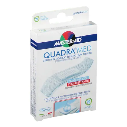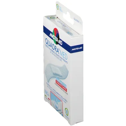 Quadra Med - это пластырь из нетканого материала, снабженный впитывающей подушечкой с дезинфицирующим веществом (хлоргексидина диглюконат 0,5%). Гипоаллергенный клей, не содержащий растворителей и натурального латекса. Он имеет эксклюзивную запатентованную эргономичную форму. Используется в основном для лечения ран с повреждением дермы, которые могут зажить вторичным натяжением. Его функция - контролировать микросреду раны и создавать барьер с внешней стороны. Показан при небольших поражениях, в частности, при наличии нежной, чувствительной и раздраженной кожи.