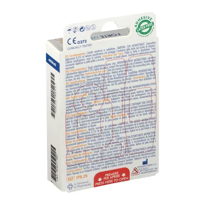 Forte Med® гарантирует высокую защиту раны от внешних факторов (грязи, бактерий) благодаря особо прочной опоре. Forte Med благодаря микроперфорации обеспечивает транспирацию кожи, избегая процессов мацерации. Forte Med® имеет центральный буфер, содержащий 0,5% диглюконата хлоргексидина, бактерицидного вещества с высоким спектром действия. Forte Med оснащен гипоаллергенным клеем, особенно подходящим даже для самой чувствительной кожи.