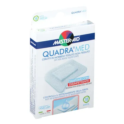 Quadra Med - это пластырь из нетканого материала, снабженный впитывающей подушечкой с дезинфицирующим веществом (хлоргексидина диглюконат 0,5%). Гипоаллергенный клей, не содержащий растворителей и натурального латекса. Он имеет эксклюзивную запатентованную эргономичную форму. Используется в основном для лечения ран с повреждением дермы, которые могут зажить вторичным натяжением. Его функция - контролировать микросреду раны и создавать барьер с внешней стороны. Показан при небольших поражениях, в частности, при наличии нежной, чувствительной и раздраженной кожи.