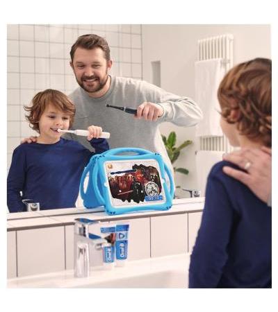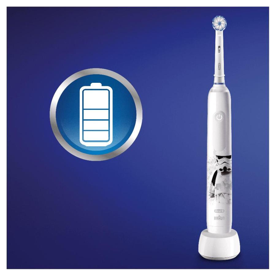 Электрическая зубная щетка Star Wars Oral-B Pro3 Junior для детей от 6 лет и старше разработана в сотрудничестве со стоматологами для обеспечения превосходной очистки. Чтобы защитить нежные десны младенцев, она оснащена регулятором давления при чистке десен, который мигает красным светом и снижает скорость чистки, когда обнаруживает, что чистка слишком сильная. Кроме того, круглая головка имеет очень мягкие щетинки. Чтобы сделать чистку еще более увлекательной, ее можно использовать с бесплатным приложением Oral-B Disney Magic Timer. На самом деле, 90% детей чистят зубы дольше с помощью приложения. Это подходящая зубная щетка, которая поможет детям самостоятельно чистить зубы и выработает правильные привычки чистки зубов, которые сохранятся со временем.