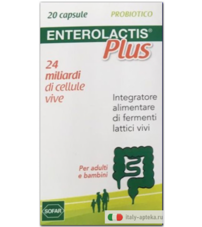 Капсулы Enterolactis Plus от производителя SOFAR SPA применяются при заболеваниях кишечника, вызванных антибиотикотерапией, острой инфекционной диареей (бактериальной и вирусной), включая диарею путешественника, диарею и вздутие живота из-за бактериального загрязнения тонкой кишки.