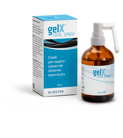 Спрей GelX® (Джеликс ®) способствует предупреждению проявлений орального мукозита (стоматита), который возможен при прохождении курса химиотерапии и/или лучевой терапии от производителя Sunstar (BMG Pharma) (Швейцария)