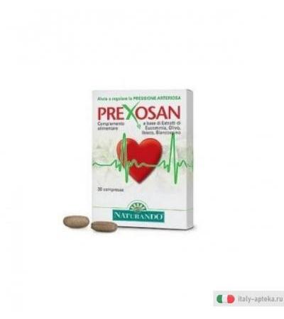 Пищевая добавка на основе растительных экстрактов, Эвкоммия, Оливы, Гибискуса и Боярышника. Способствует физиологической регуляции артериального давления. PREXOSAN действует благодаря синергии между 4 растительных экстрактов, которые его составляют, веществ большое научное значение. Эти экстракты, полученные из коры Эвкоммии, из листьев Оливкового дерева, листьев и цветков Боярышника и цветков Гибискуса. Такая синергия особенно полезно для того чтобы отрегулировать давление. ЭВКОММИЯ ULMOIDE Растение родом из Европы и Северной Америки, она получила известность растение с полезные действия на печень и на почки. Позже некоторые эксперименты показали, что кора используется для регулирования артериального давления. Кроме того, возможность уменьшения содержания жира в крови. Многочисленные исследования подтверждают его способность снижать артериальное давление. ОЛИВКОВЫЕ листья этого растения, богатые oleuropina, функциональные вещества полезны для сердца и большое научное значение, в народной традиции используются для того, чтобы вернуть в норму артериальное давление у пациентов с мягкой артериальной гипертензией. БОЯРЫШНИК Действует в основном на регуляцию сердечного ритма, что приводит к регуляции артериального давления. Увеличивает сопротивление к усилию. Является богатым источником проантоцианидинов и антиоксидантов, которые питают ткани сердца и кровеносных сосудов. ГИБИСКУС Также это растение, и, в частности, цветы, показывают эффекты в состоянии вернуть их к норме артериальное давление в том случае, если слишком высокой. Недавние исследования подтверждают свойства angioprotettive и антиоксидантные эффекты. 30 таблеток